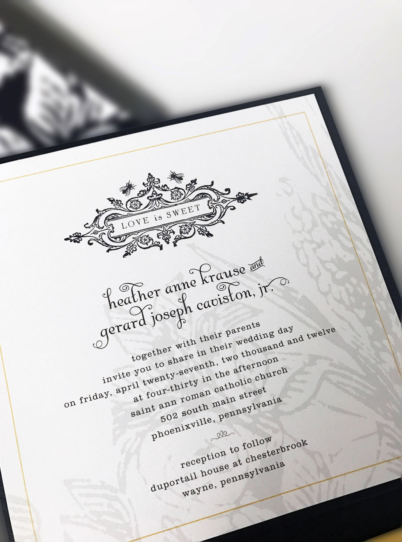 For my wedding in 2012, I designed all of the printed materials including save the date cards, invitations, programs, table and menu cards, and signage. The theme “love is sweet” was carried throughout the project with vintage honeybee and flower illustrations that reflected the historic reception venue. Flowers and decorations at the event incorporated the yellow, grey and white color palette from the printed pieces.